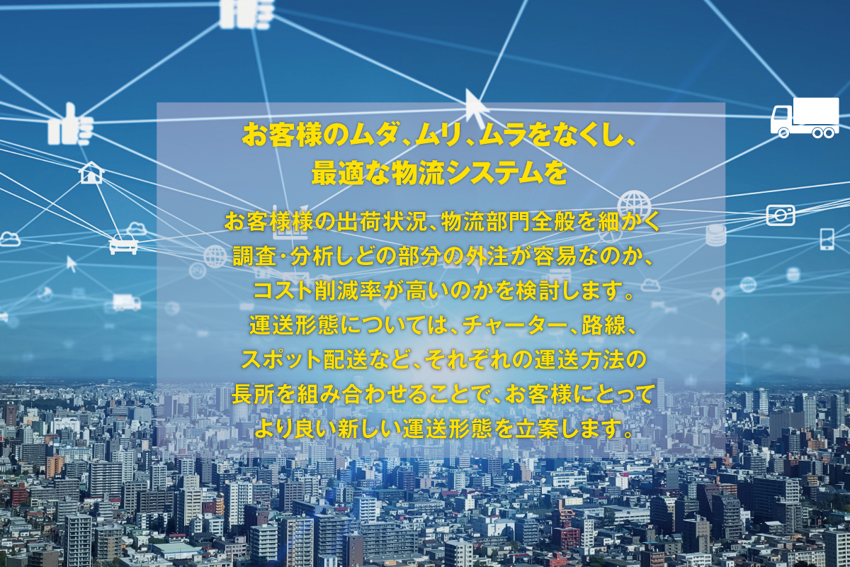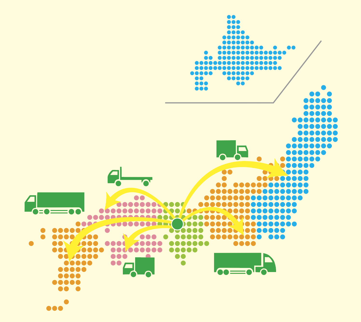 物流サービスのご紹介 会社案内 安心・安全への取り組み 私達と働こう(採用) 一般貨物、貨物自動車利用での専属便や定期便、チャーター便、スポット便など、お客様のあらゆるニーズに対応!自社倉庫もあり一時保管もご対応! 迅速にお応えできる対応力と多彩な車輌ラインナップが、当社の強みです。大阪・関西を中心に、東海・関東・北陸・東北・中国・四国・九州地方へ配送しております。お気軽にご相談ください。各配車担当の対応とご提案で評価を頂いています。 電話対応歓迎です。 お客様のトラック輸送ニーズへ迅速に、着実安全にお応えできる対応力がございます。お気軽にご相談ください。